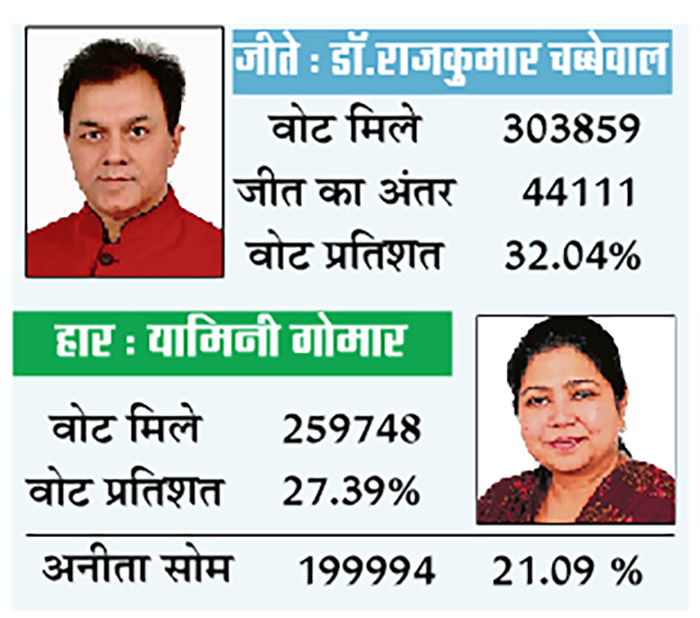 आम आदमी पार्टी के डॉ. राजकुमार चब्बेवाल ने होशियारपुर सीट पर अपनी निकटतम प्रतिद्वंदी कांग्रेस प्रत्याशी यामिनी गोमार को 44411 मतों से पराजित किया। डॉ. राज कुमार को 3,03859 वोट मिले जबकि यामिनी गोमर 2,59748 वोट हासिल कर पाईं।