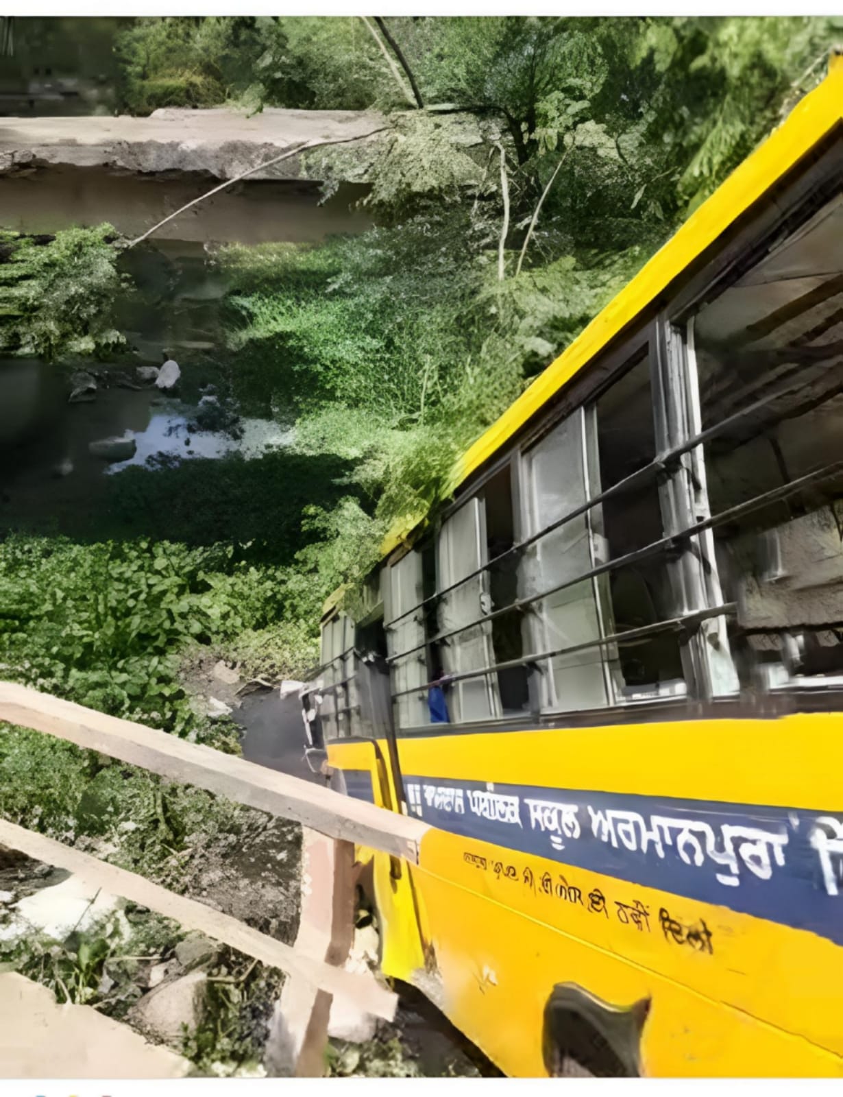 बताया जा रहा कि जैसे ही बस हस्ती वाला गांव के पास पहुंची तो सेम नाले के पुल पर लगी ग्रिल से टकराने के बाद नाले में जा गिरी। घटना के समय बस में लगभग दो दर्जन बच्चे सवार थे। बताया जा रहा है कि यह बस गुरु रामदास पब्लिक स्कूल की है।