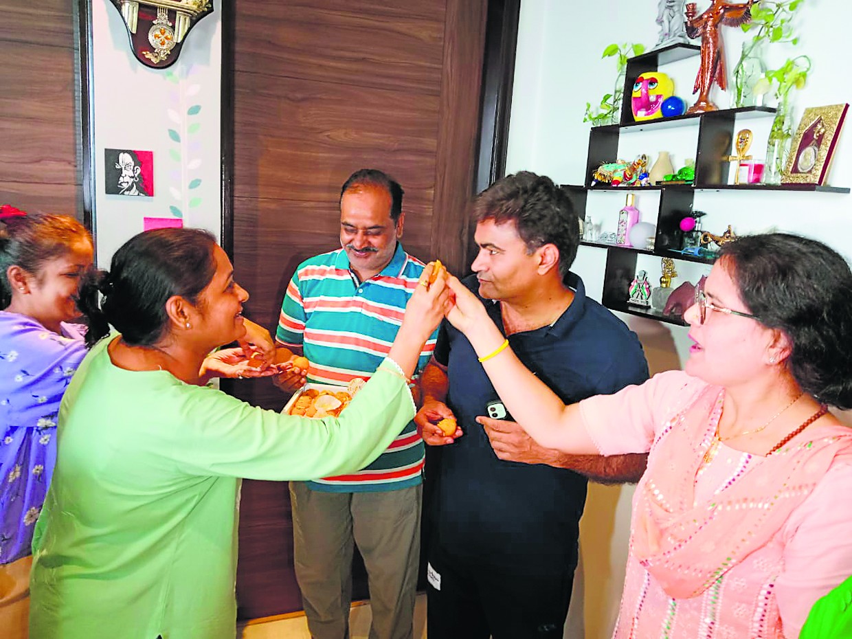चरखी दादरी में लड्डू बांटकर मनाई खुशियां