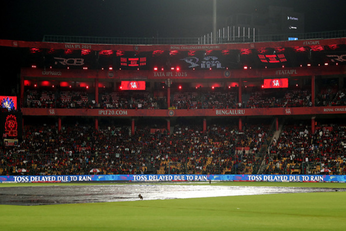 पिच और मैदान के ज्यादातर हिस्से कवर से ढके हुए है। मैच के टॉस का कटऑफ समय रात 10:41 बजे है, जबकि 5-5 ओवर के मैच के लिए कटऑफ समय रात 10:56 बजे हैं। चिन्नास्वामी स्टेडियम की ड्रेनेज सुविधा काफी अच्छी है। ऐसे में बारिश रूकने के कुछ ही देर में मैच शुरू हो सकता है।