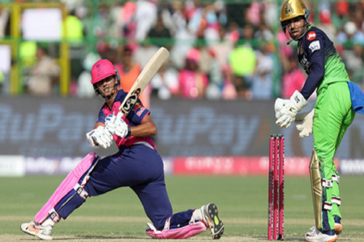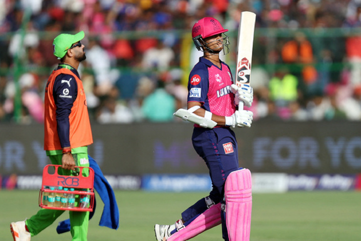 कोहली ने कार्तिकेय और हसरंगा पर छक्के के साथ 39 गेंद में अर्धशतक पूरा किया। पडिक्कल ने देशपांडे पर चौके और छक्के के बाद संदीप पर चौके के साथ टीम को जीत दिलाई। इससे पहले आरसीबी के कप्तान रजत पाटीदार ने टॉस जीतकर गेंदबाजी का फैसला किया जिसके बाद जायसवाल और संजू सैमसन (15) ने पावर प्ले में 45 रन जोड़कर टीम को सतर्क शुरुआत दिलाई। जायसवाल ने भुवनेश्वर कुमार पर चौके से खाता खोला और फिर यश दयाल की लगातार गेंदों पर छक्का और चौका मारा। सैमसन हालांकि जूझते हुए नजर आए और पावर प्ले में उन्होंने एकमात्र चौका जोश हेजलवुड पर जड़ा। इसके बाद कप्तान सैमसन का धैर्य जवाब दे गया। वह कृणाल पंड्या की गेंद पर बड़ा शॉट खेलने की कोशिश क्रीज से आगे बढ़े।