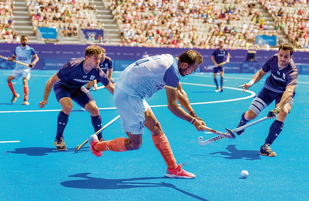 आखिरी सीटी बजने से एक मिनट पहले पेनल्टी कॉर्नर पर कप्तान हरमनप्रीत सिंह के गोल के दम पर भारत ने पेरिस ओलंपिक पुरुष हॉकी स्पर्धा में पूल बी के मैच में रियो ओलंपिक चैम्पियन अर्जेंटीना को 1-1 से ड्रॉ पर रोका। भारत को इस मैच में मिले दसवें पेनल्टी कॉर्नर पर यह पहला गोल आया। पिछले मैच में भी 59वें मिनट में पेनल्टी स्ट्रोक पर हरमनप्रीत के गोल की बदौलत ही भारत ने न्यूजीलैंड को 3-2 से हराया था । टोक्यो ओलंपिक की कांस्य पदक विजेता भारतीय टीम पूरे मैच में रंग में नहीं दिखी। अर्जेंटीना ने 22वें मिनट में लुकास मार्तिनेज के गोल के दम पर बढ़त बना ली और उसके बाद भारतीय टीम बराबरी के गोल के लिये तरसती रही। लेकिन भारत का किस्मत ने साथ दिया और 59वें मिनट में अहम पेनल्टी कॉर्नर मिला।