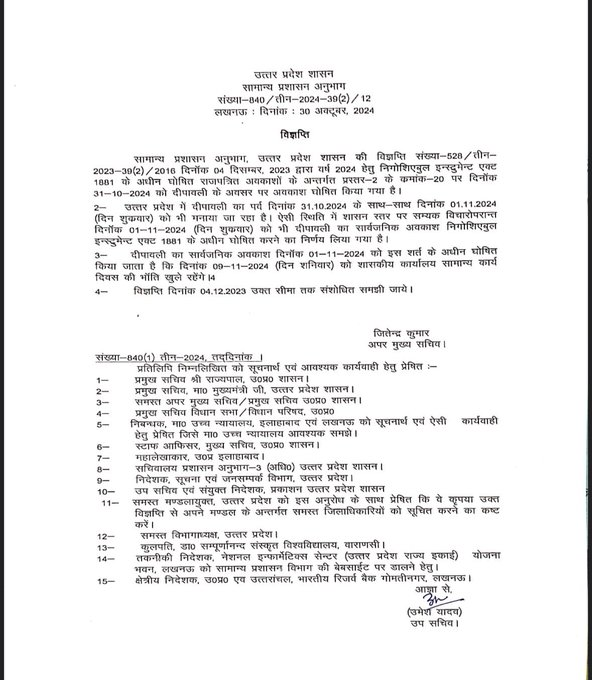 Deepawali 2024 Holiday: यूपी व उत्तराखंड में दिवाली पर दो दिन की छुट्टी, पंजाब में भी अवकाश
