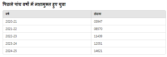 2020-2021 से लेकर 2022-23 यानी तीन वर्षों की अवधि में प्रदेश के दो जिलों – भिवानी व नूंह में एक भी युवा नशे की चपेट में नहीं था। इस रिपोर्ट के हिसाब से पिछले दाे वर्षों में इन दोनों जिलों में भी मरीज मिलने शुरू हो गए हैं। 2023-24 में भिवानी जिला में 248 तथा नूंह में 34 युवा नशामुक्ति केंद्रों में पहुंचे। वहीं पहली अप्रैल, 2024 से 18 मार्च, 2025 तक की अवधि में भिवानी में 835 और नूंह में 100 युवा नशे की चपेट में आए हैं।