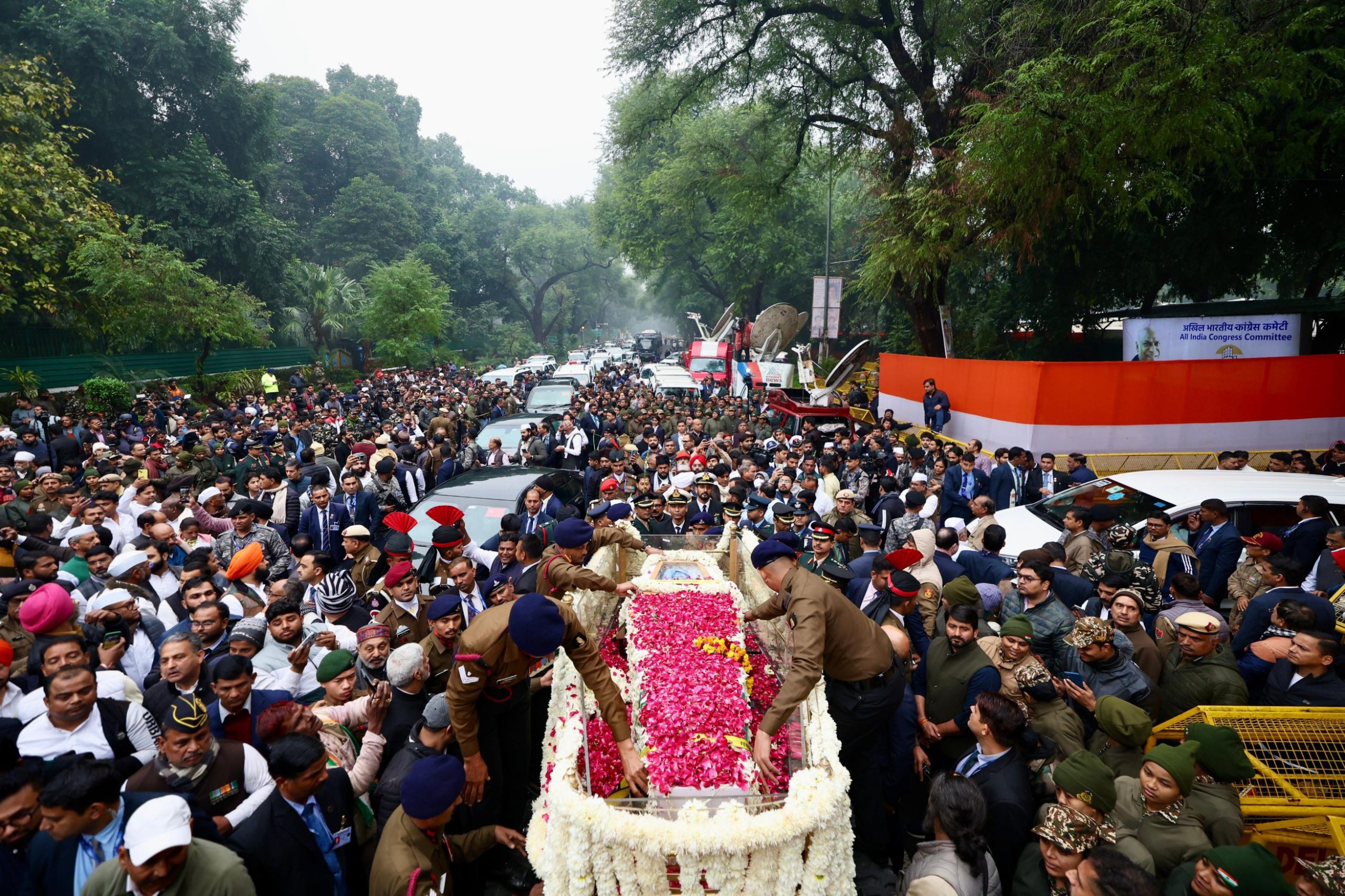 सिंह का पार्थिव शरीर जिस वाहन में रखा गया, उसमें कांग्रेस के पूर्व अध्यक्ष राहुल गांधी, सिंह के परिवार के कुछ सदस्य और कांग्रेस के कुछ नेता भी बैठे थे। अंतिम यात्रा से पहले सिंह का पार्थिव शरीर कांग्रेस मुख्यालय ‘24 अकबर रोड' में रखा गया था जहां सोनिया गांधी, खरगे, राहुल गांधी और पार्टी के कई अन्य वरिष्ठ नेताओं एवं कार्यकर्ताओं ने उन्हें श्रद्धांजलि दी।