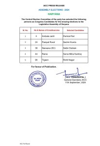 Haryana Congress List: कांग्रेस ने 45 और सीटों पर उतारे उम्मीदवार, 4 सीट अभी भी होल्ड पर