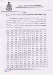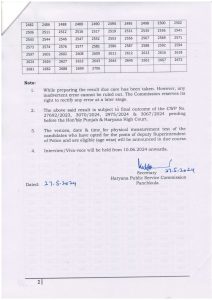 HCS एचसीएस व संबद्ध सेवाओं की मुख्य परीक्षा के नतीजे घोषित करने के साथ ही आयोग ने स्पष्ट कर दिया है कि अंतिम परिणाम पंजाब एवं हरियाणा हाईकोर्ट में चल रहे केस के फैसले पर निर्भर करेगा। यहां बता दें कि एचसीएस की कार्यकारी शाखा के तीन, डीएसपी के छह, आबकारी एवं कराधान अधिकारी के आठ, जिला खाद्य एवं आपूर्ति नियंत्रक के दो, सहायक रजिस्ट्रार सहकारी समितियां के एक, सहायक आबकारी एवं कराधान अधिकारी के 19, विकास एवं पंचायत अधिकारी के 37, यातायात प्रबंधक