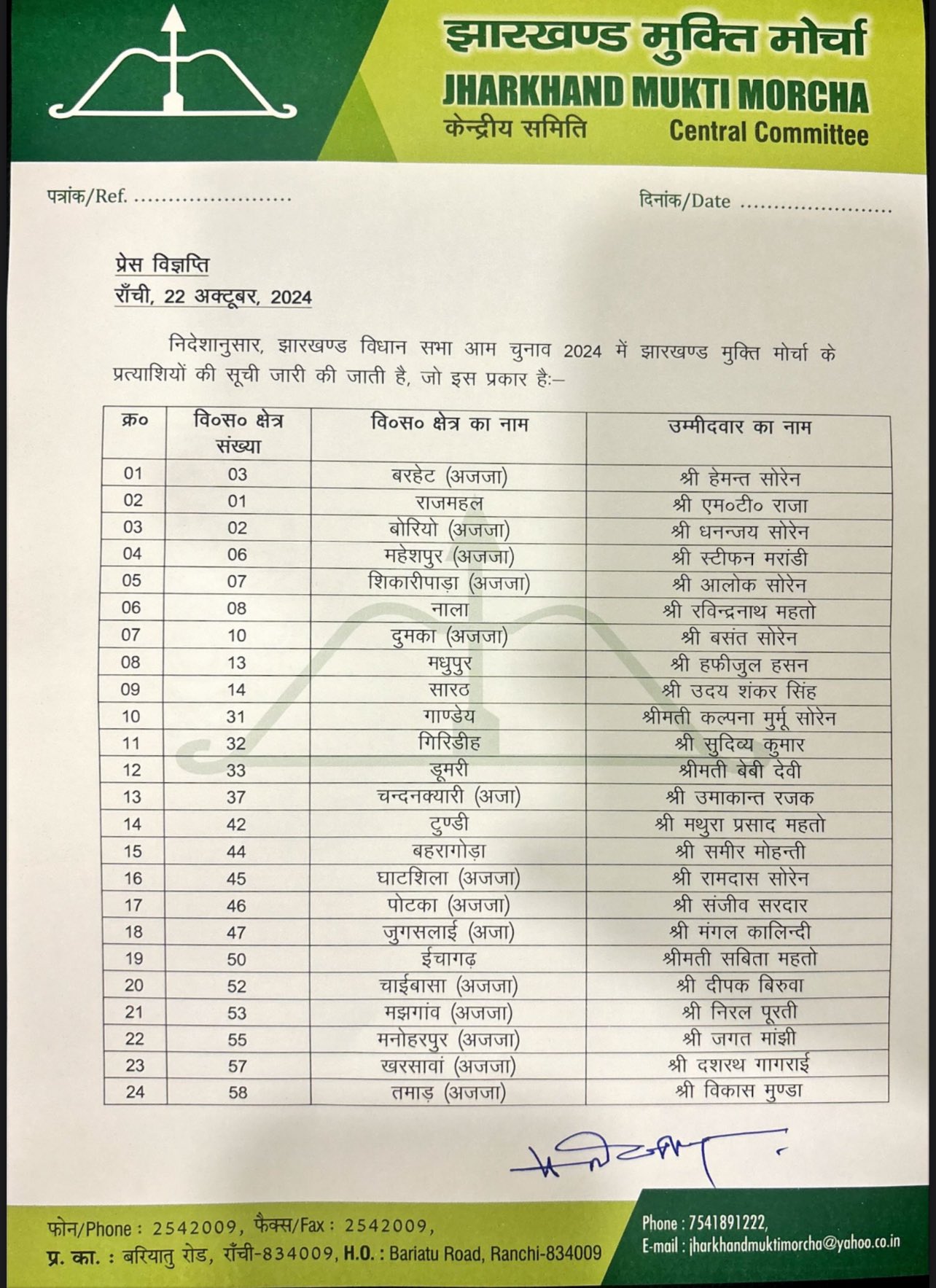 JMM candidates List: झारखंड में झामुमो ने जारी की 35 प्रत्याशियों की सूची, हेमंत सोरेन बरहेट से मैदान में