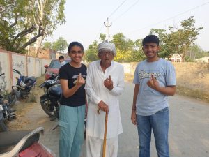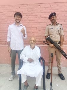 ओलंपिक मेडलिस्ट योगेश्वर दत्त के पैतृक गांव भैंसवाल कलां में पहली बार मतदान करने वाले आकाश। साथ हैं 96 वर्षीय दादा लछमी दत्त। (सभी फोटो स्रोत दैनिक ट्रिब्यून)