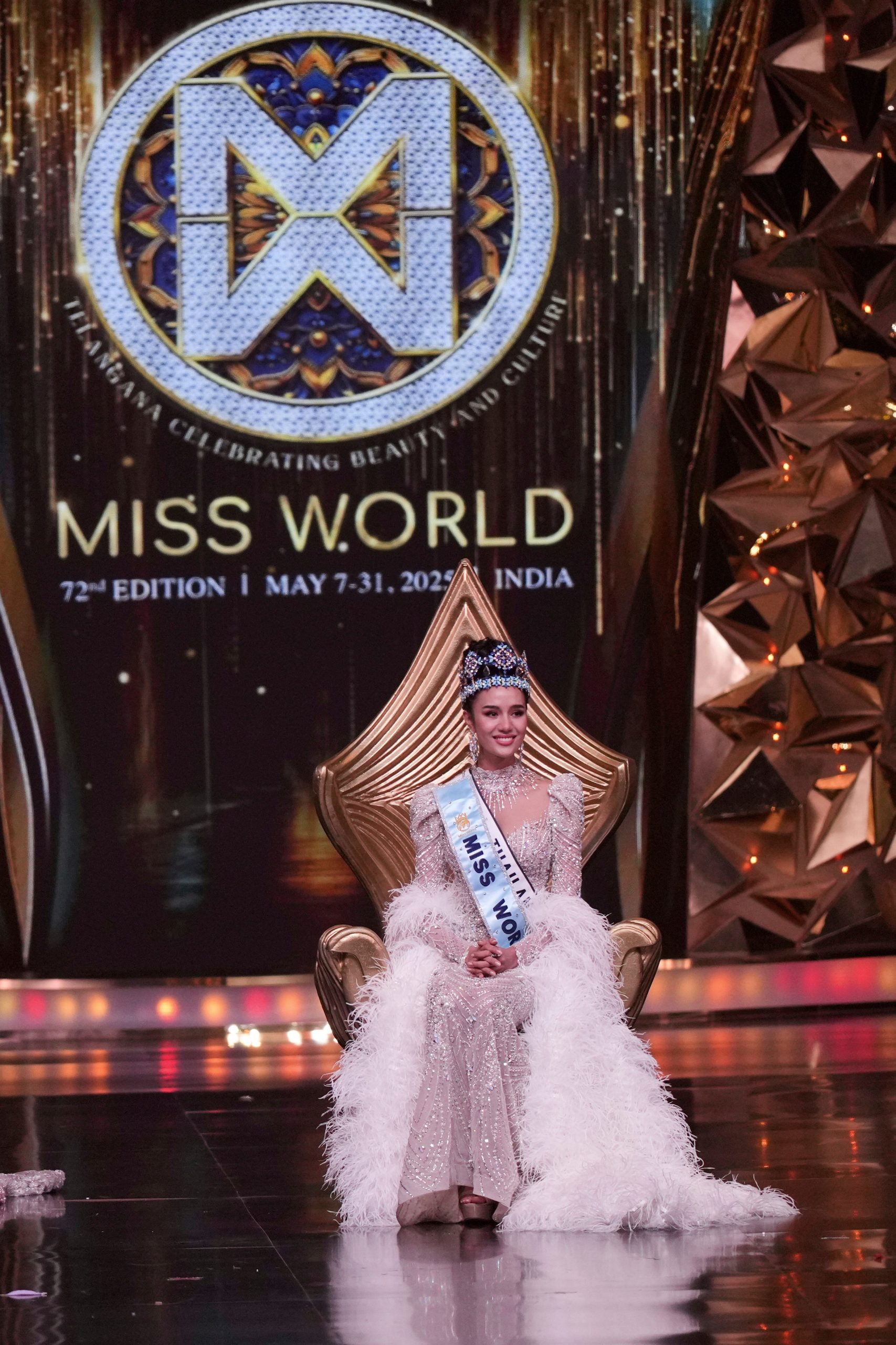 उन्होंने कहा कि थाईलैंड 72 साल से भी अधिक समय से ‘मिस वर्ल्ड' के ताज का इंतजार कर रहा था। चुआंगश्री ने कहा, ‘‘थाईलैंड में मेरे लोग, हम 72 साल से अधिक समय से अपने पहले ‘मिस वर्ल्ड' ताज का इंतजार कर रहे थे और मुझे यकीन नहीं हो रहा कि अपना पहला ताज जीतने का सम्मान मुझे मिला है। मुझे बहुत गर्व महसूस हो रहा है, न सिर्फ खुद पर, बल्कि अपने लोगों और अपनी टीम पर भी क्योंकि उन्हीं की वजह से मैं यहां हूं।'' ‘