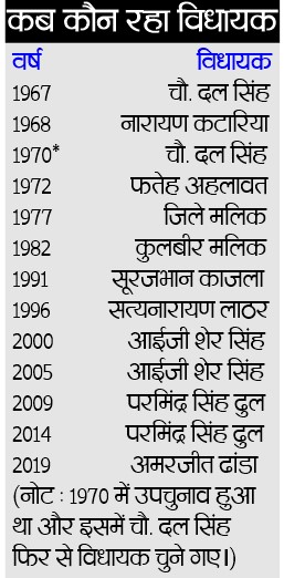 2019 में जजपा को मिला था साथ : जुलाना को लोकदल का गढ़ इसलिए भी कहा जाता है, क्योंकि यहां से कई बार देवीलाल-चौटाला परिवार के टिकट पर विधायक बने। पिछले तीन चुनावों को ही देखें तो 2009 और 2014 में इनेलो के परमिंद्र सिंह ढुल जुलाना से विधायक बने। 2018 में इनेलो और चौटाला परिवार में हुए बिखराव के बाद जननायक जनता पार्टी (जजपा) अस्तित्व में आई। जजपा के टिकट पर जुलाना से अमरजीत सिंह ढांडा ने जीत हासिल की। अमरजीत सिंह ढांडा एक बार फिर जजपा टिकट पर चुनाव लड़ रहे हैं। भाजपा से टिकट नहीं मिलने के बाद बागी हुए सुरेंद्र सिंह लाठर अब इनेलो-बसपा गठबंधन टिकट पर जुलाना से चुनाव लड़ रहे हैं।